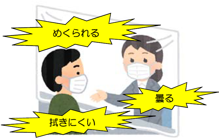 さらに拭くことで透明度が下がって視界が悪くなるのです。資料なども見えにくくなり、お客さまはますますビニールカーテンをめくりたくなるのです。
